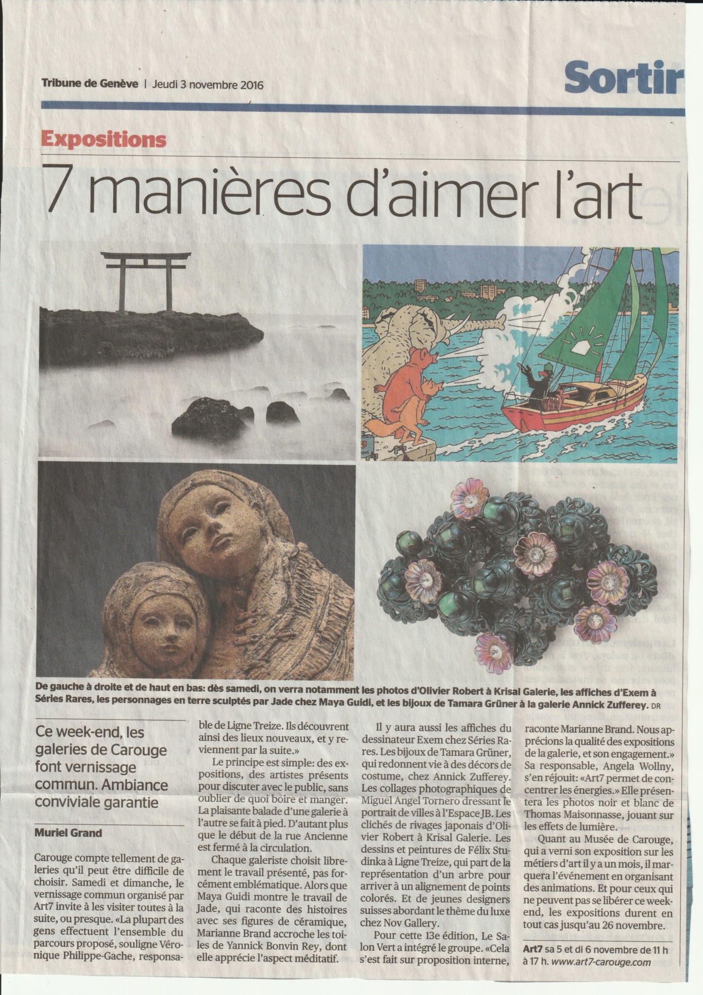 Vernissage 5 et 6 novembre 2016Dans le cadre d’Art7, je présente ma nouvelle exposition à Galerie Marianne Brand à Carouge.